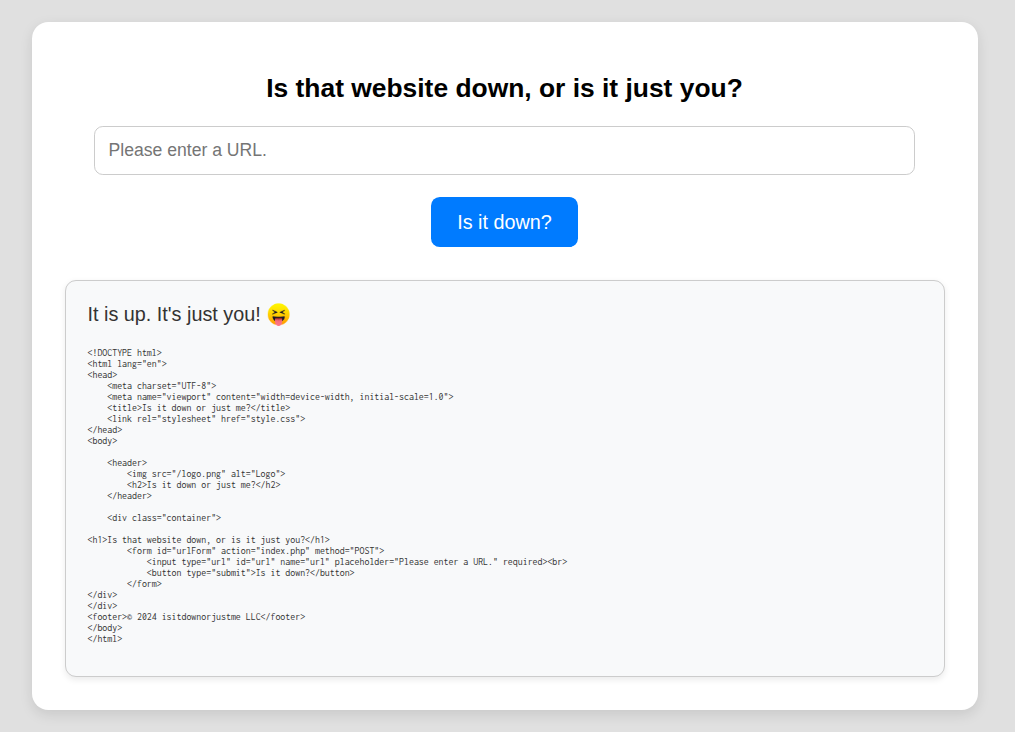 echo "<font size=+1>It is up. It's just you! ๐</font><br><br>";