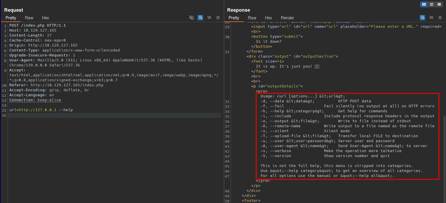 Down is an easy Linux machine. The initial foothold is obtained through command injection in a web application that runs curl